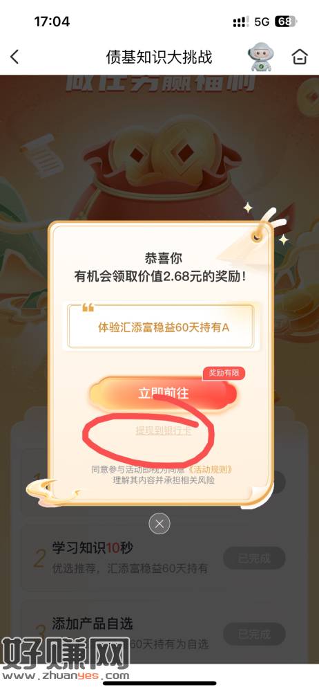 人人2.68 邮储APP-底部【财富】中间横幅【债基知识大挑战】-完成任务领取
