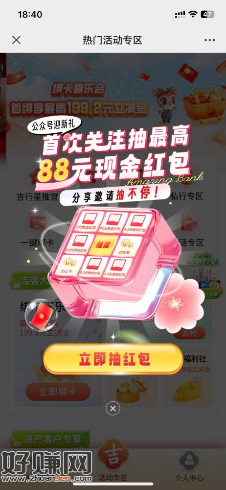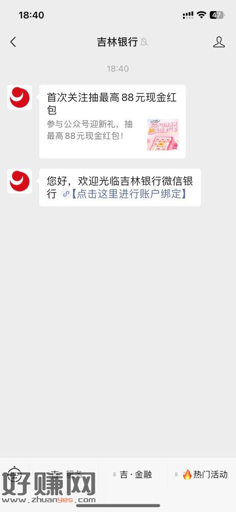 微信公众号:吉林银行 推文 没有推文的右一弹窗 零钱0.3