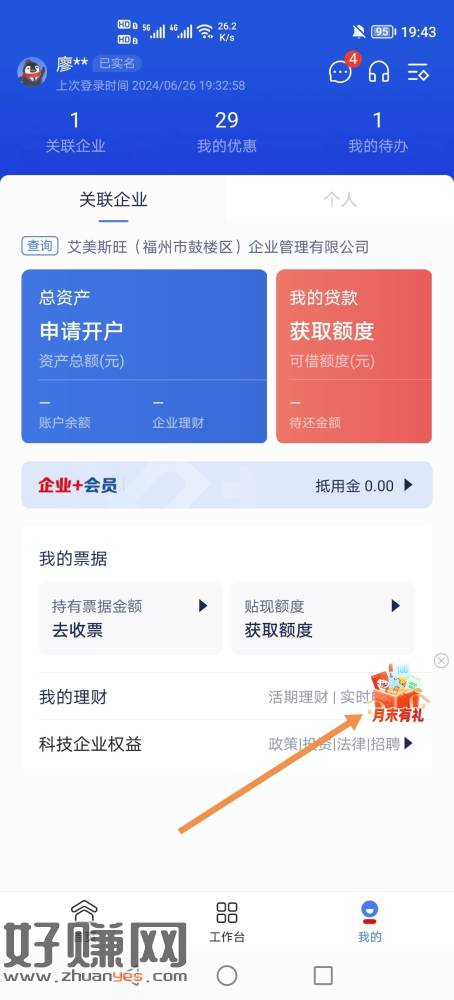 微众银行企业金融app抽奖更新。入口在这里,我抽中一张5一张
