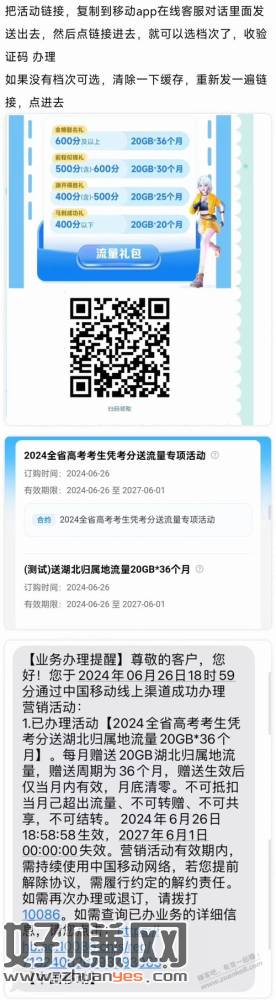 湖北移动0元720G