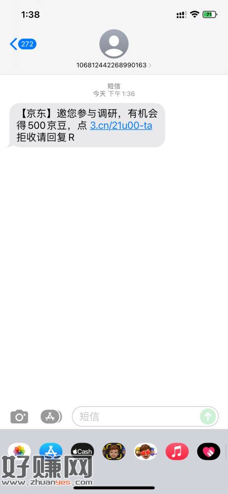 【京东】邀您参与调研,有机会得500京豆,点 3.cn/21u00-ta 拒收请回复R