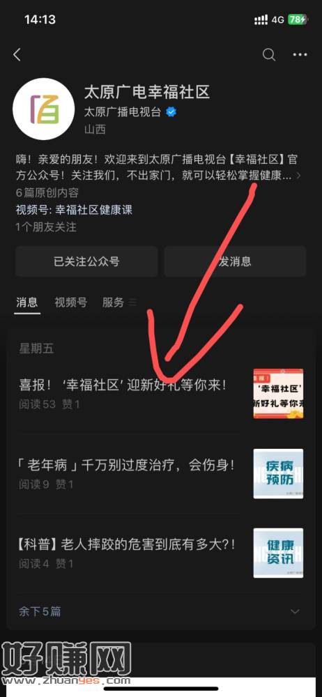 人人5毛,多号去,gzh 太原广电幸福社区,进群,关注gzh 关注视频号,填一个简单问卷,1分钟搞定,然后加福利官领取,我搞了8个号了给你们玩