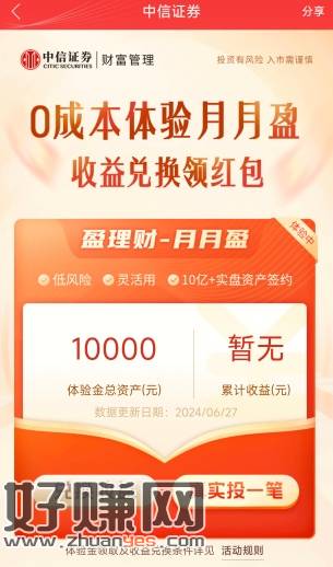有中信证券基金账号的去,1万体验金体验7天