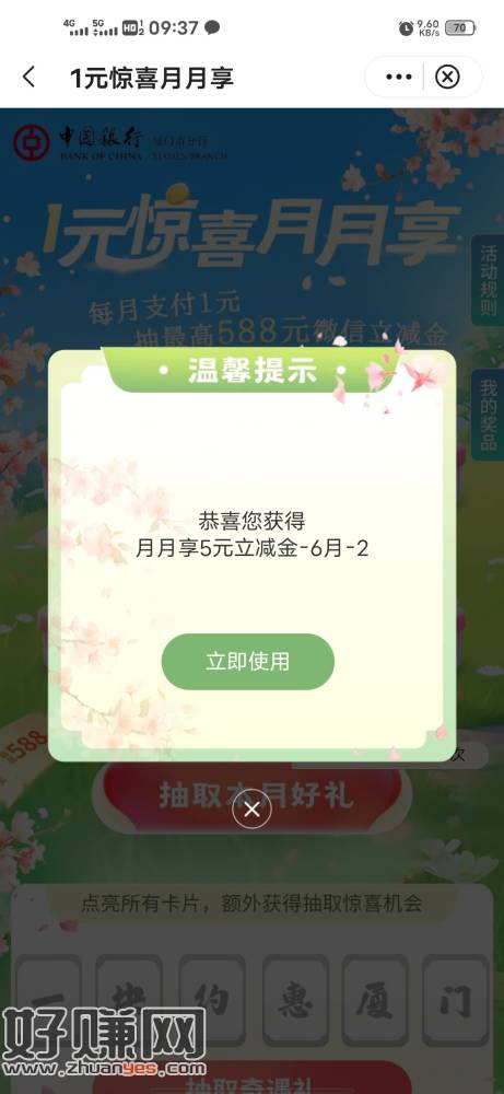 花一块抽微信立减金,刚中5