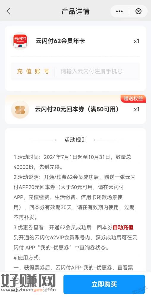 云闪付搜“62”有个62会员特惠购,62开送20回本券,电费,话费,还款都能用,这个就比较舒服了
