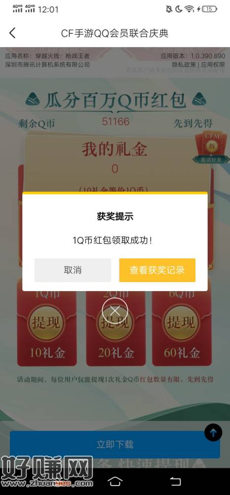 qq钱包 福利穿越火线点击穿越瓜分那个,新号或者回归都还有