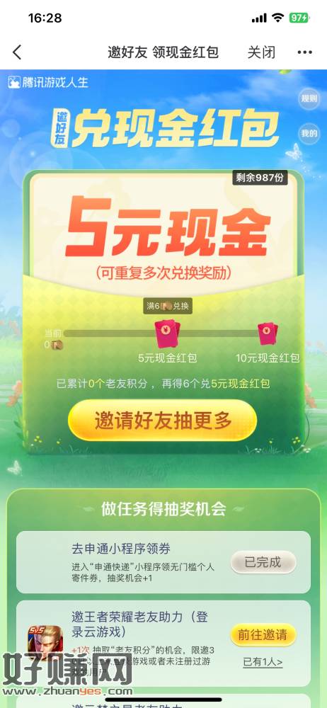 首先说下号多的30多天没登游戏的,搞第一个5是最划算的,(申通+王者+元梦+和平都是回流)登录就送4积分再加随便助力两次就可以兑5现金了极其简单,10现金起码要十二三次。