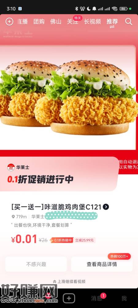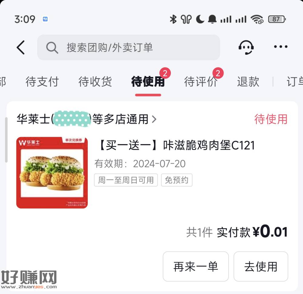 7- 【买一送一】咔滋脆鸡肉堡C121,仅售¥10,戳链接得团购优惠