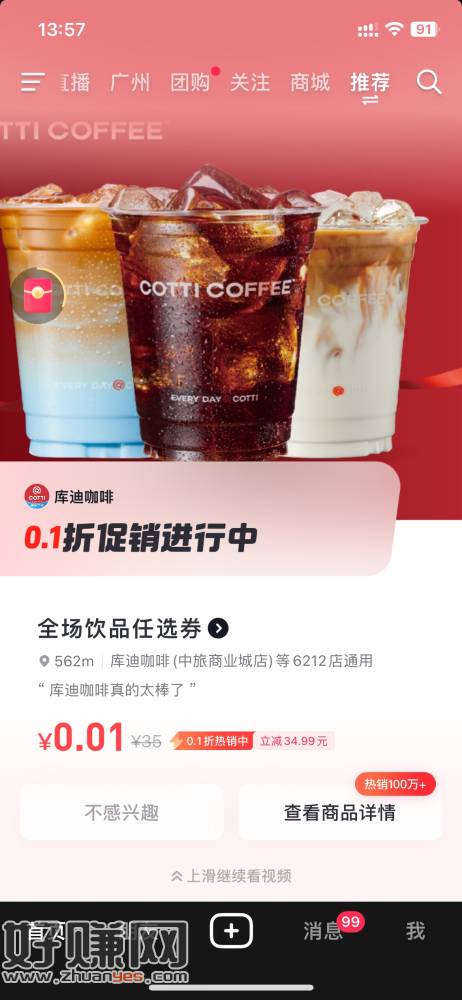 库迪0.01,兄弟们看看抖音不出优惠的极速版会不会出优惠,今天突然跳出来的
