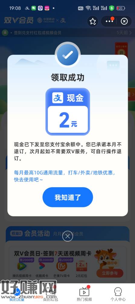 开通过支付宝双v会员的去点退订,然后跳出2r现金不让你退