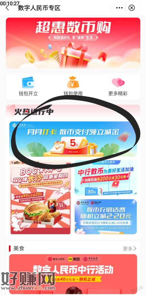 路径:中行APP-生活-数币专区-月月打卡-用数币支付一元,领五元立减金,快冲啊,兄弟们,好用加果果
