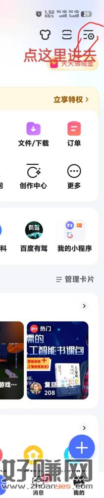 百度app,我的右上角设置进去,找到武侠宝藏,进去做任务,现在有中实物,跟现金红包还有实物的武林秘籍