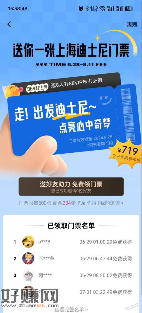 88vip拉8个人开通 可以领迪士尼门票一张 去收人头 有润应该
