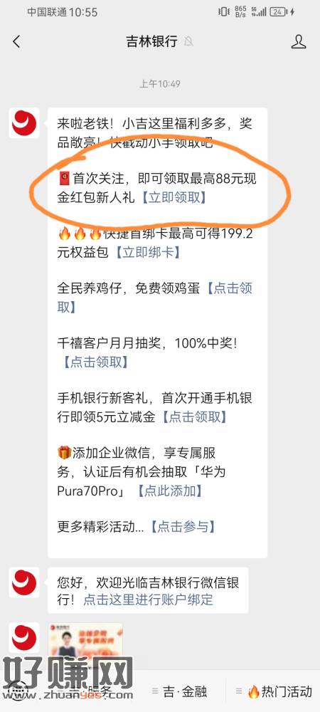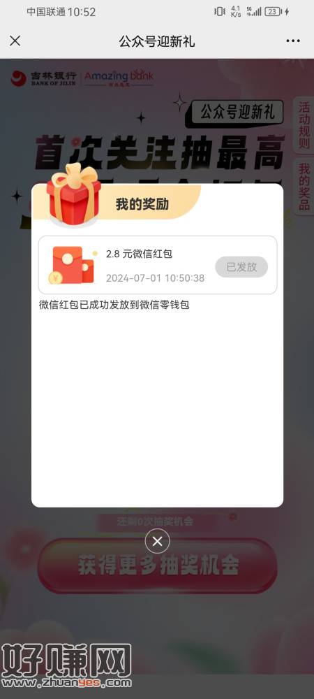 关注吉林银行,抽奖直接到微信零钱,不用卡