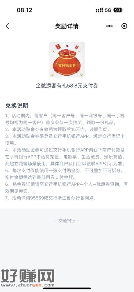 交通银行微信小程序,有浙江卡(除宁波)的去看看,拿到的都反馈一下