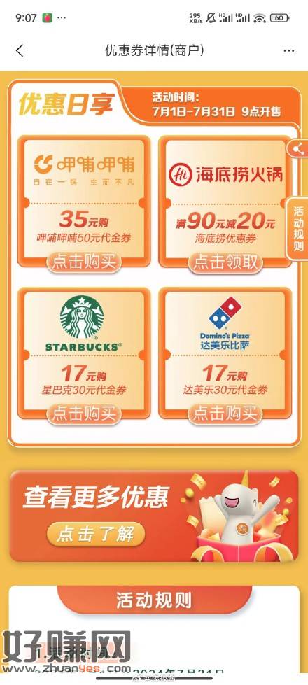 截至7.31页面下拉还有信用卡专享和优惠日享
