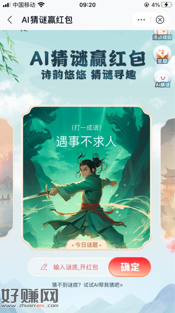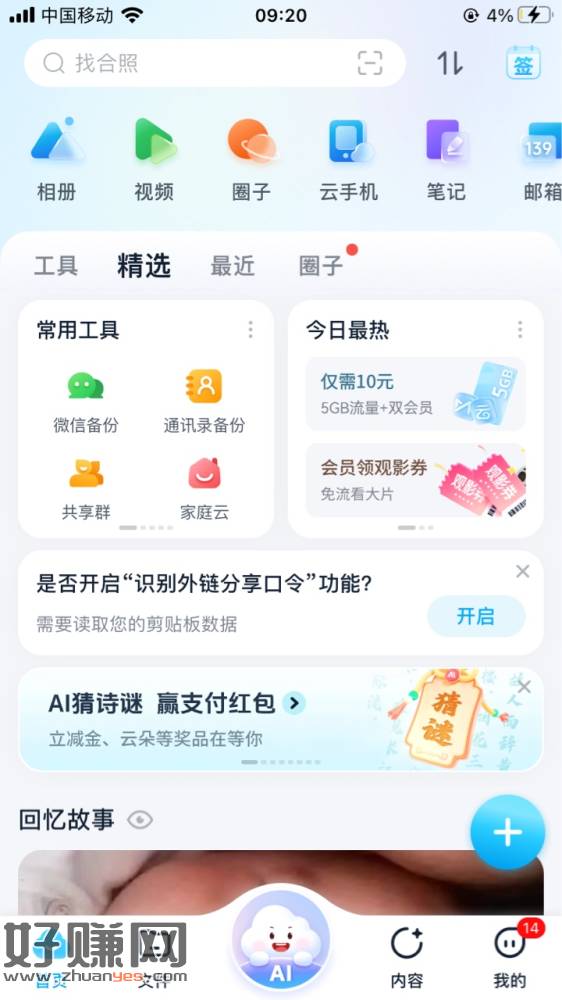 移动云盘AI猜谜底,连续两天中支付宝红包,