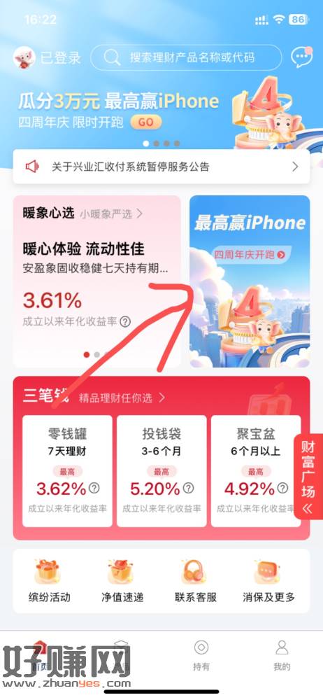 信银理财4周年,300积分玩一次游戏,每天达到300.600