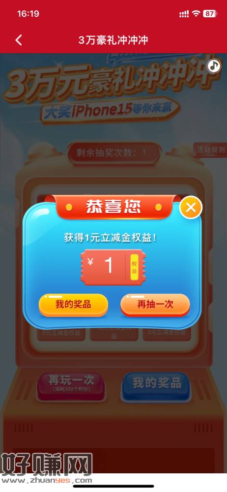 信银理财4周年,300积分玩一次游戏,每天达到300.600.900分各得一次抽奖机会,建议就一天玩一次达标300的,900不把握浪费我600积分