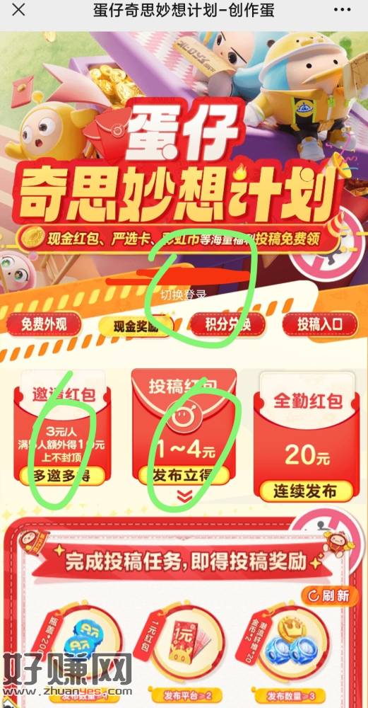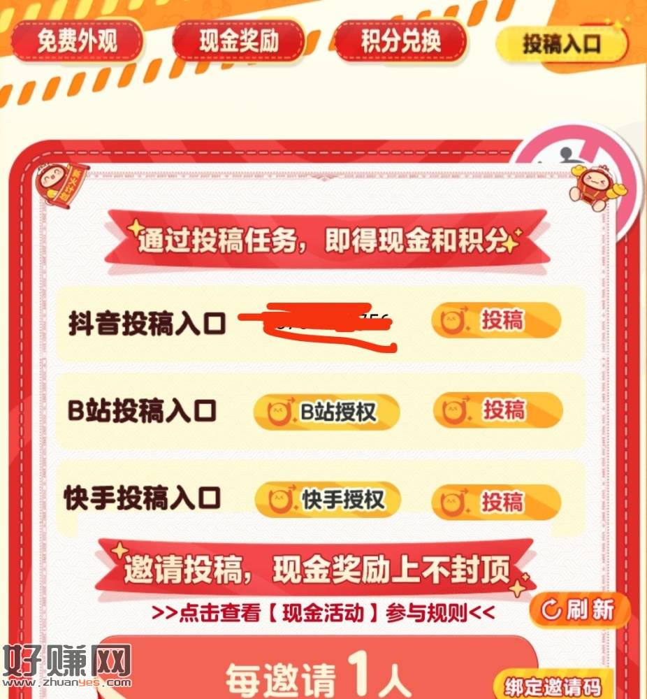 2,点自己的邀请连接,jm网易易闪,然后点投稿,把三大平台任意一个的绑定二维码去绑了,去网上找图片发视频,发的你自己绑的平台,不要模糊不要有氺印,带#蛋仔奇思妙想计划和蛋仔派对话题,然后回到连接投稿处点投稿进去上传,投稿失败是话题没整好。