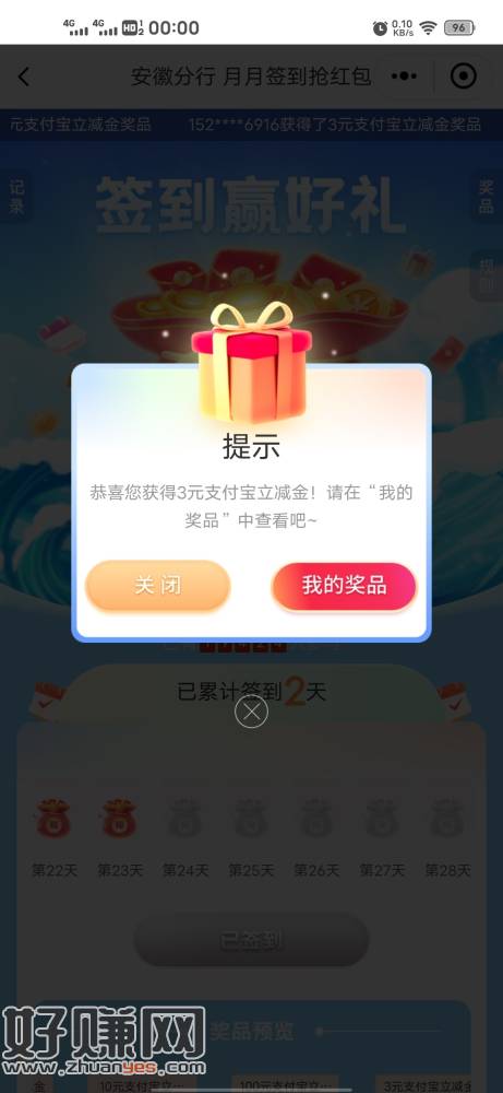 自如生活节抽奖 亲测8.8元现金+眼罩