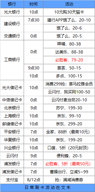 活动入口:掌上生活APP-精选-刷卡有礼(7月31日截止)