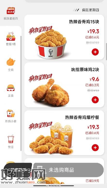 肯德基疯狂星期四,2个原味鸡9.9,微信扫码点的话9.6