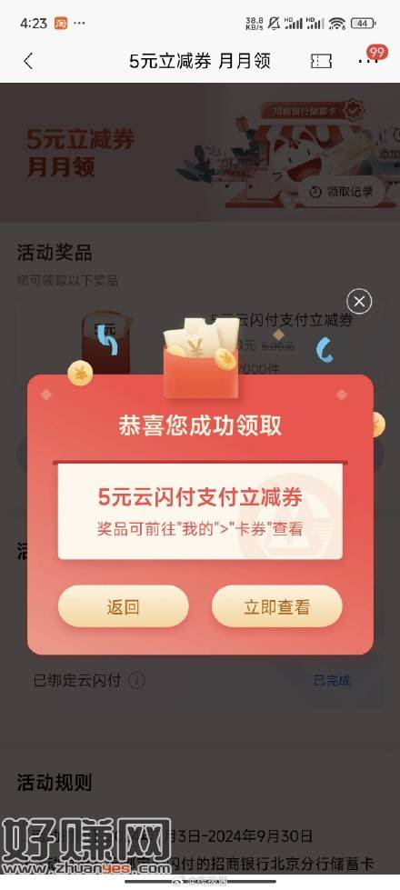 北京招行可领5元云闪付