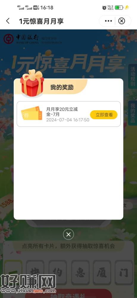 中行飞厦门,城市服务 乐享一夏 1元抽立减金