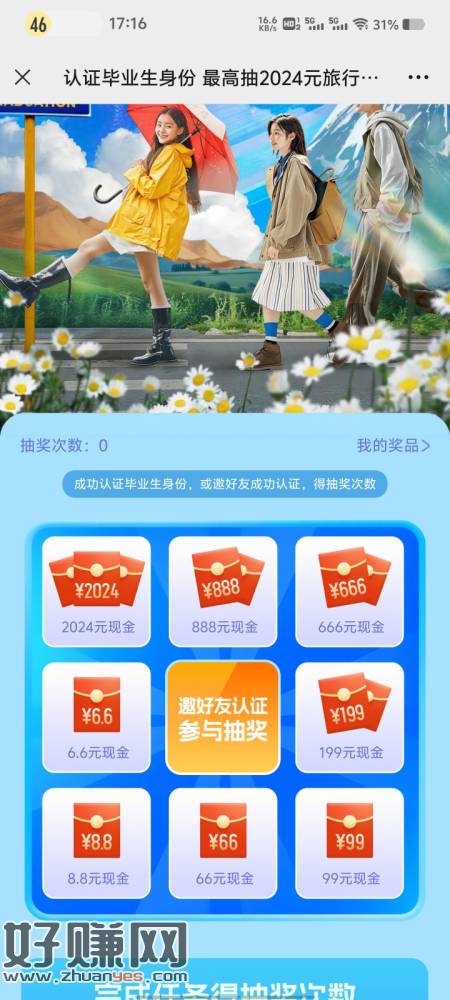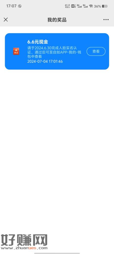 自如,22-24届大学生认证,最低6.6,抽中后下载自如app,实名认证后自动到钱包