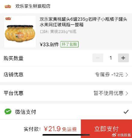 21.9 欢乐家黄桃罐头235g*6