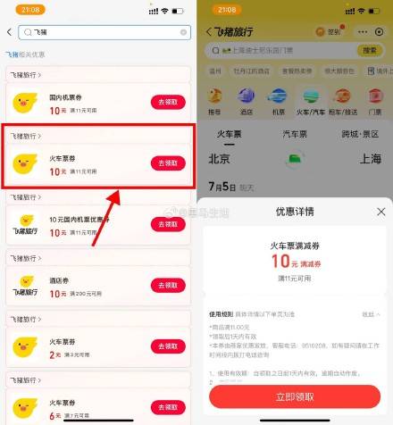 【支付宝领飞猪11减10元火车券】支付宝搜索“消费券”->进入再搜索“飞猪”->领11-10亓火车票券