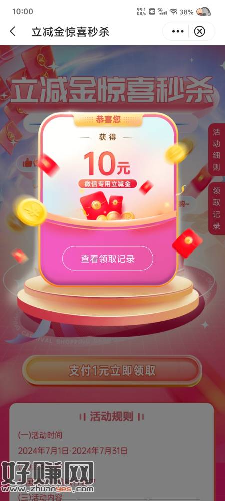 下午四点 还有一场 中国银行 一元购10立减金