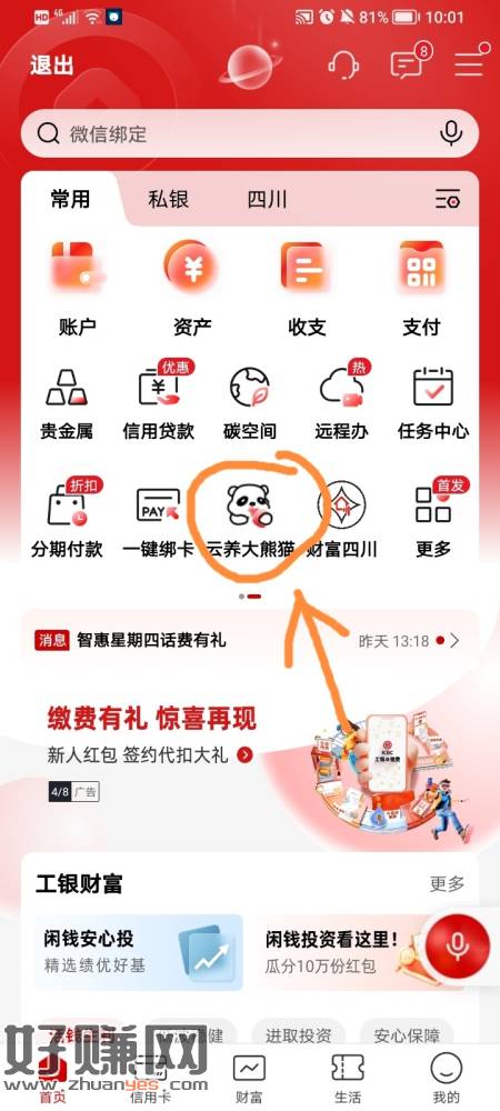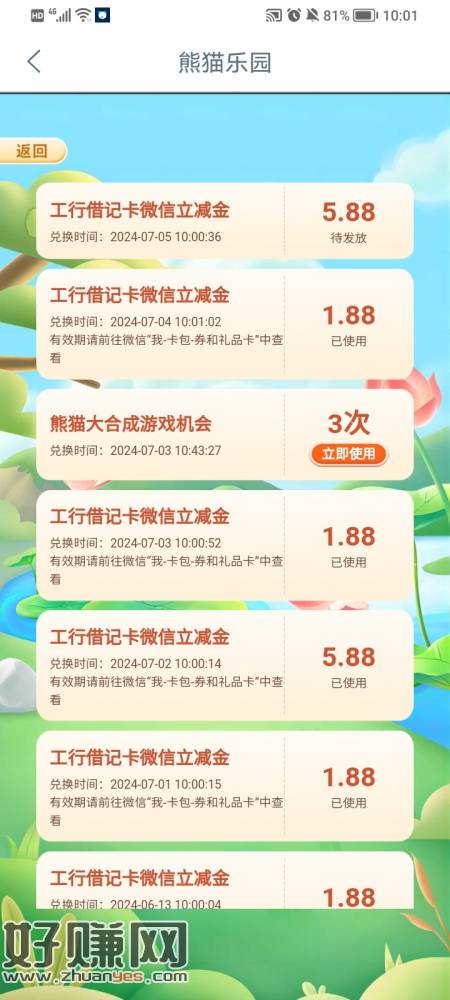 工行四川,云养大熊猫,每天10点15点兑立减金。