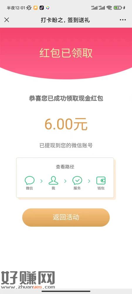 微信支付摇一摇大水呀刚中6元