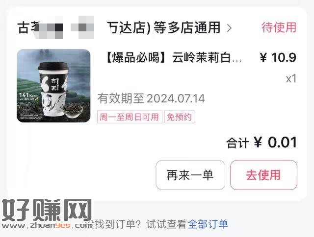 1- 团购活动 【爆品必喝】云岭茉莉白(券自动到账小程序),仅售¥0.01,戳链接得团购优惠