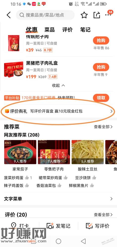 大众点评随意搜个团购往下拉,这个位置有个评价得红包点进去,随便评价15字