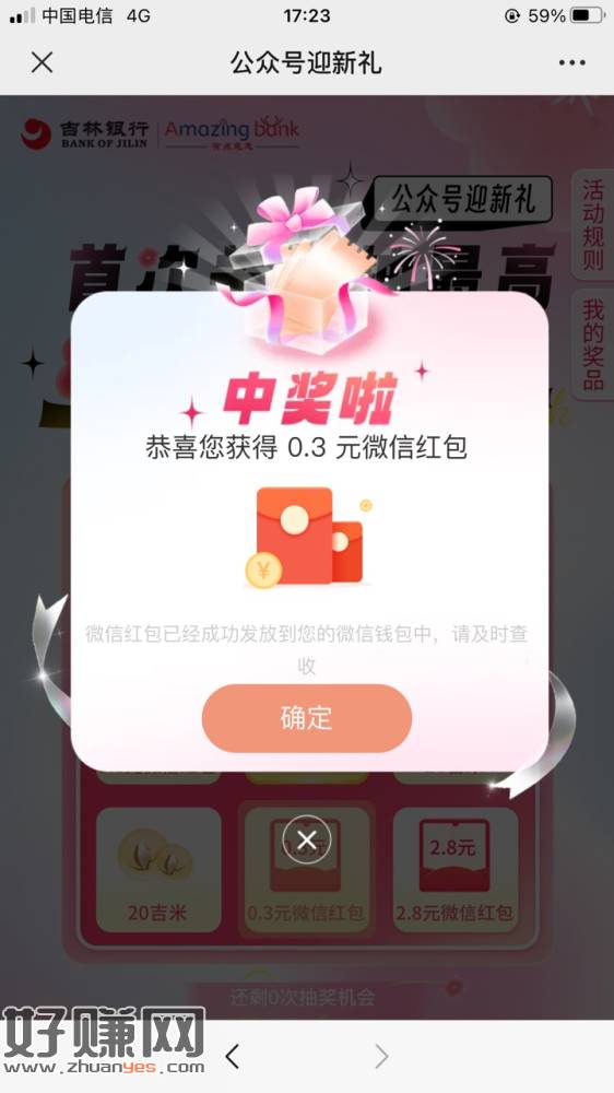 吉林银行关注公众号抽奖,直达有头,不让发,你们自己去搜吧