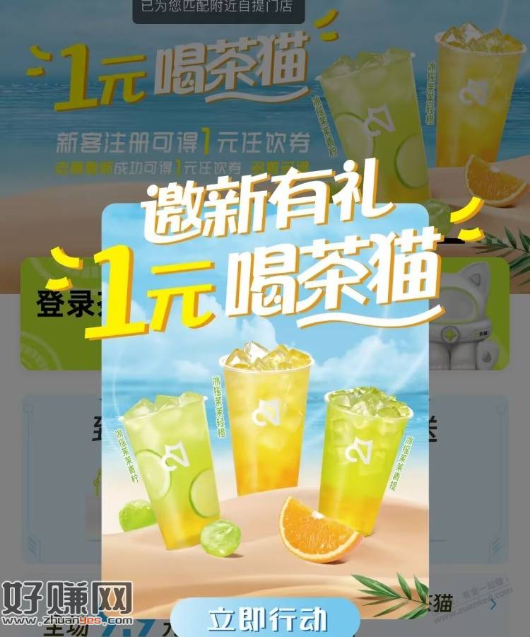 Vx小程xu 茶猫 新用户领1亓饮品奍 老客邀新也可得1亓饮品券