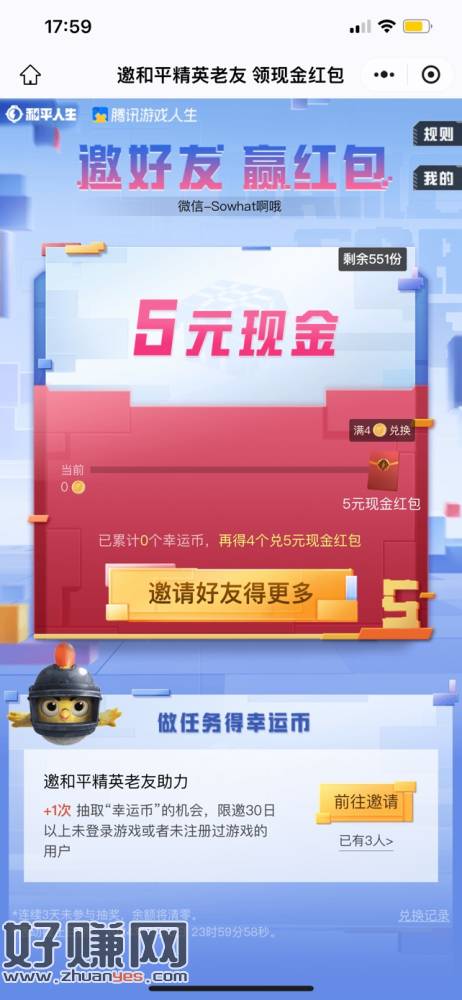 和平精英拉3个人就能领5元,轻轻松松,还有550份,速度