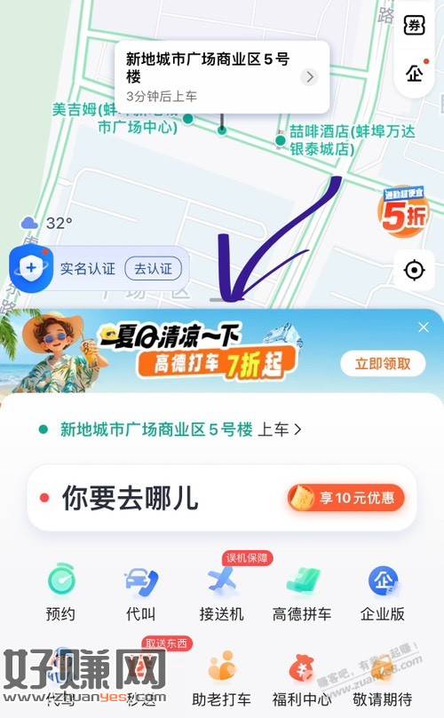 高德地图—打车,夏日清凉一下的广告点进去,下滑,全城打车2元起,有3元无门槛和满12-10。有的夏日清凉的广告模块不在横幅上,下拉页面找一下轮播。