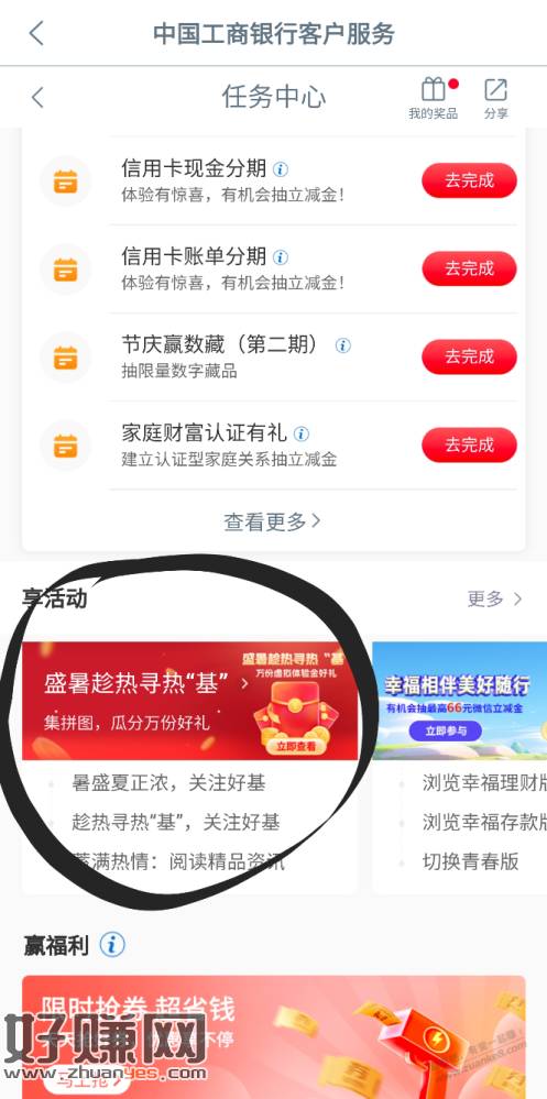 路径:工行app-任务中心-滑动找到图片画圈圈的