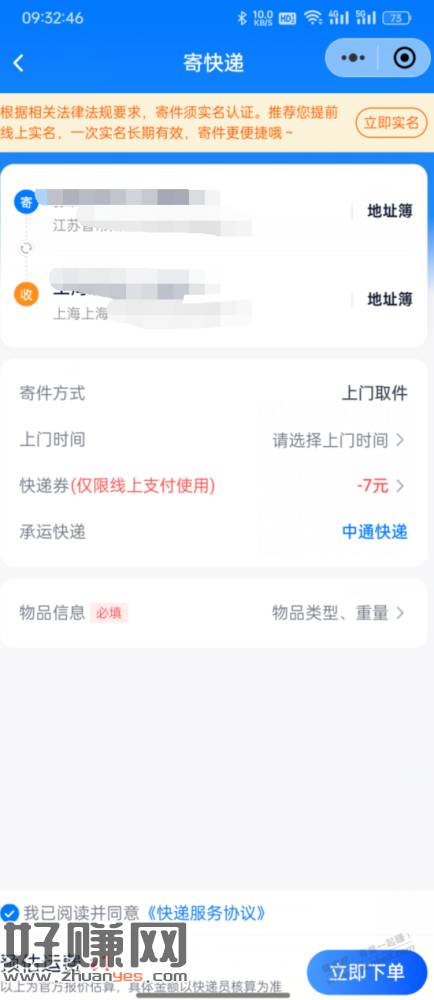 留着备用 中通上门取件一元寄快递