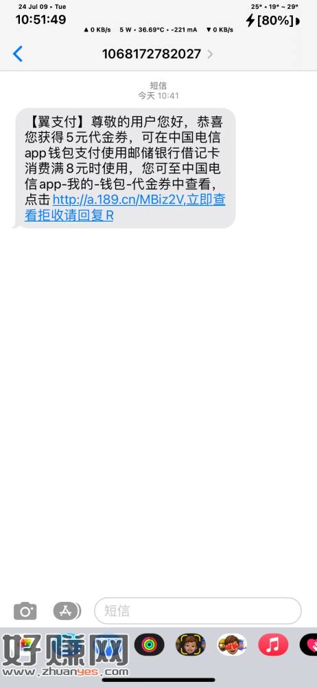 电信App钱包首绑邮储卡8-5代金券扫码可T