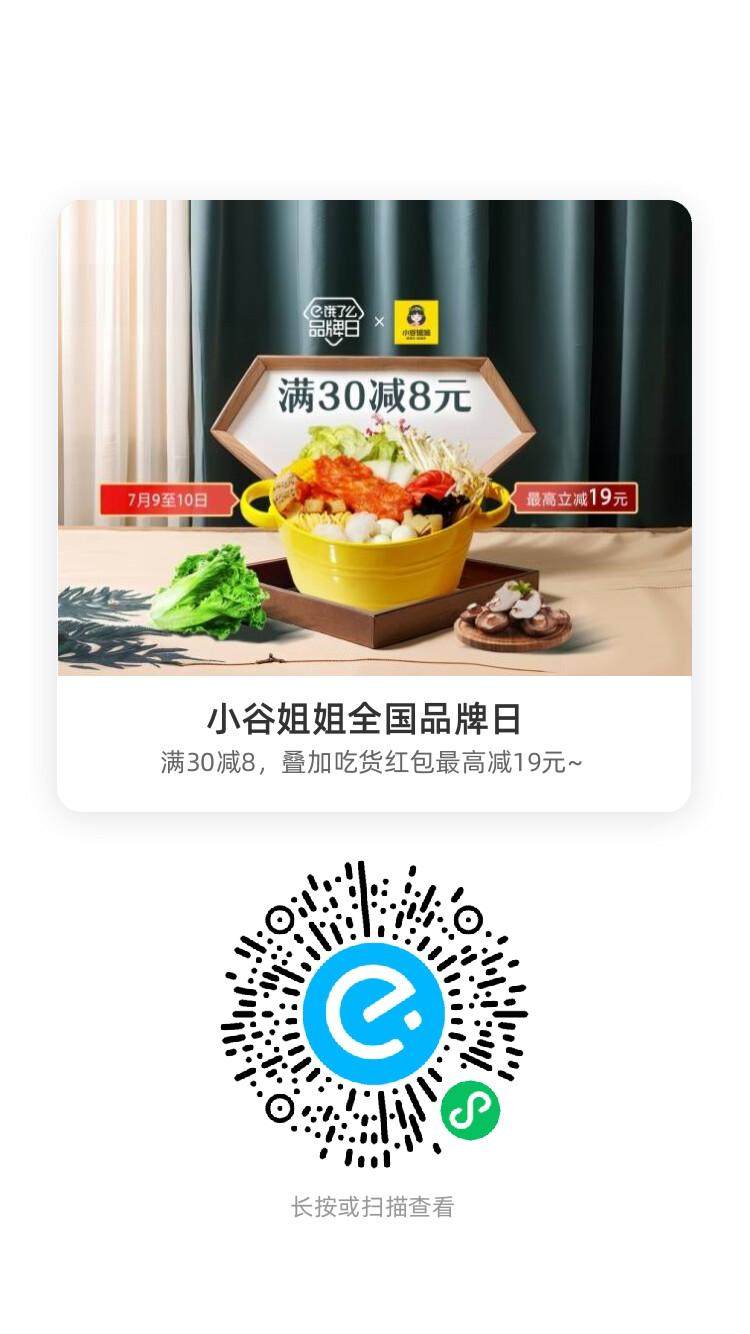 小谷姐姐全国品牌日,满30减8,叠加吃货红包最高减19元~