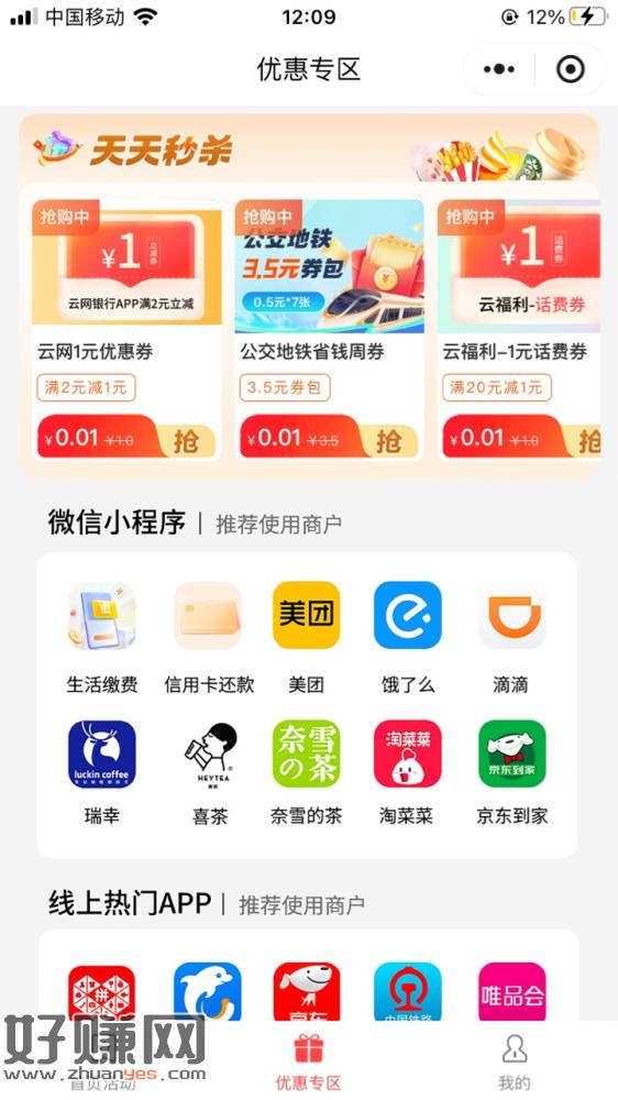 江西地区的兄弟看过来,之前app购买了少妇U惠江西20张满2减1优惠卷的继续去买20张一起总共40毛,购买路径,U惠江西小程序里,优惠专区,天天秒杀,购买20张,一天用10张,实测可以用,顺便把那个签到抽奖任务也做一下,购买一定要选择Y闪付支付,微信支付不行,有任何不懂的可以评论区留言,
