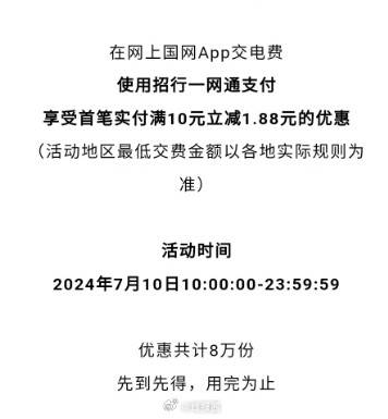 网上国网App今天缴费10元用招行卡,有10-1.88