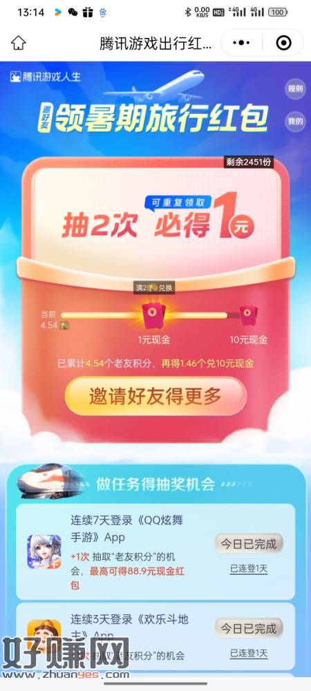 腾讯游戏人生,抽两次必得1,没小号的去玩,可多次领取,小号多