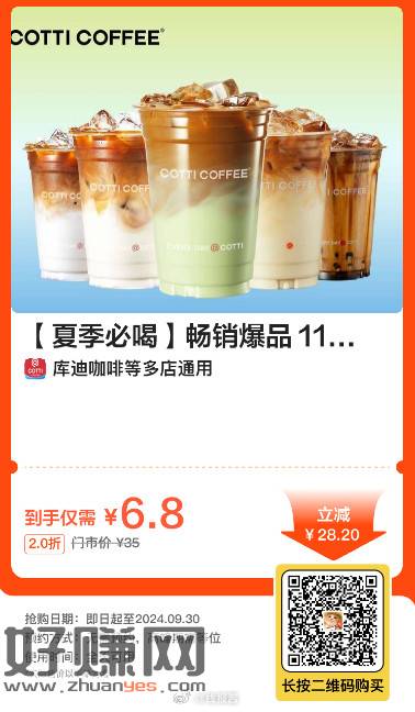 6.8,库迪咖啡|【夏季必喝】畅销爆品 11 选 1