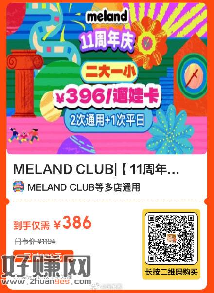 386,MELAND CLUB【11周年庆·遛娃卡】2大1小三次暑期欢享